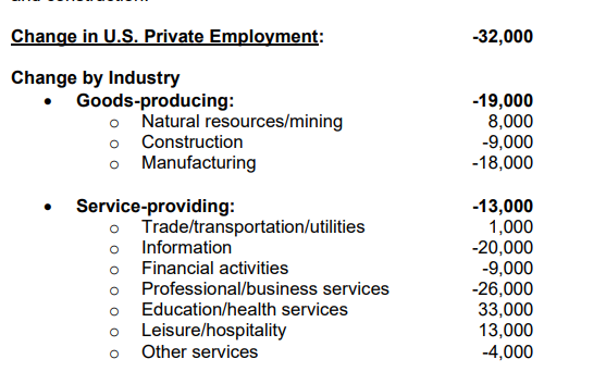 Important to mention that ADP uses a totally different methodology than non-farm payrolls and is only private sector, and that’s why they are usually different. Both probably have their weaknesses, but I would only use it as additional confirmation of the overall trend.