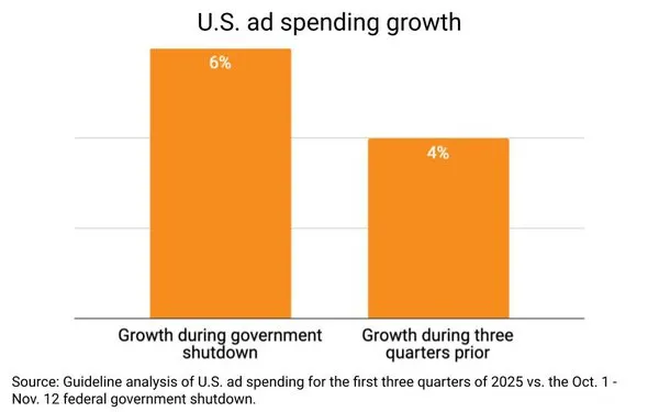 Guideline estimates that US ad spend grew 6% y/y during the October 1 - November 12 shutdown.