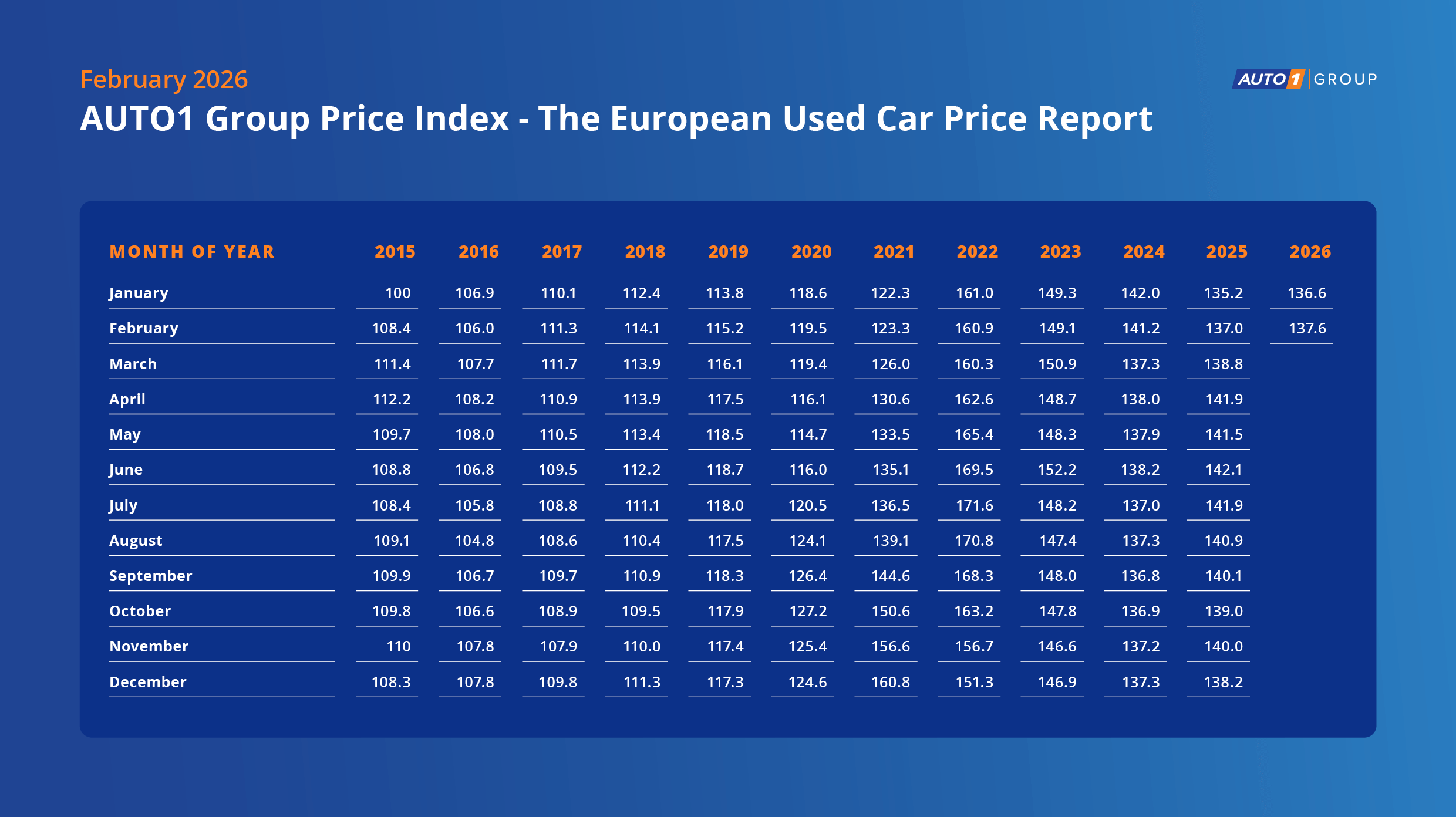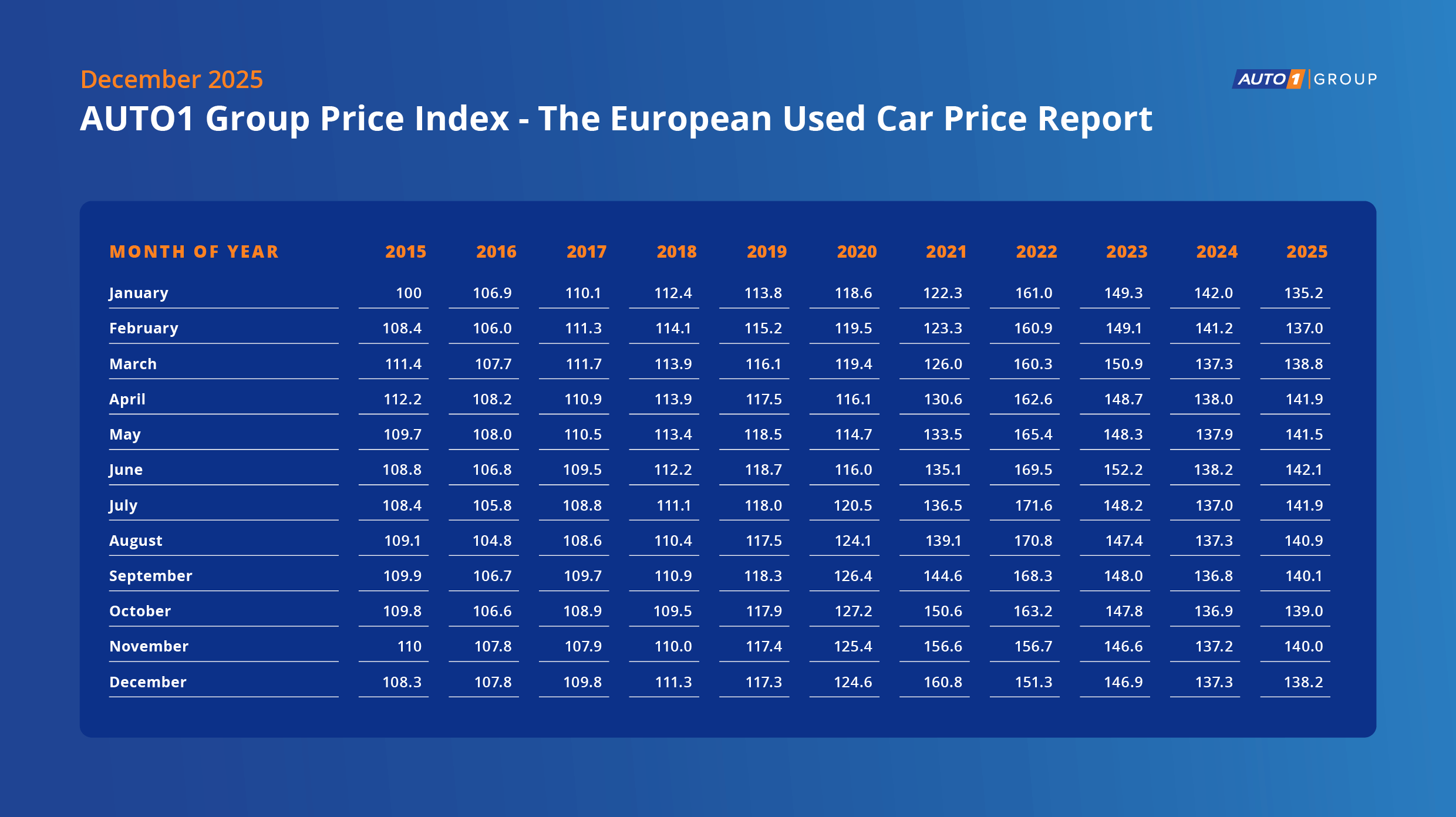 Europe used car prices were up in Q3 2025 with AUTO1 Group Price Index rising 3.6%, 2.6% and 2.4% y/y in July, August and September respectively