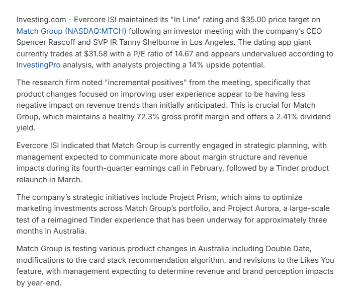 HSBC raised Match Group’s price target to $35 from $32 (reason behind paywall).