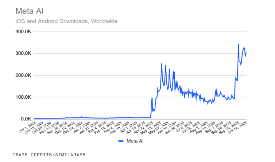 Meta AI app continues to benefit from the launch of Vibes on Sept. 25, with downloads on both iOS and Android up 56% month-to-month to a total of 3.9 million as of Oct.18, according to data from Appfigures.