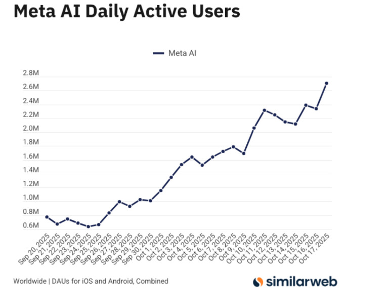 I=8 Meta AI app continues to benefit from the launch of Vibes but Sora’s momentum continues