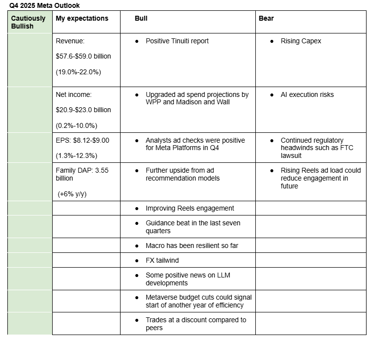 This topic discusses the upcoming Q4 2025 Meta Platforms earnings. It will include our final assessment and decision before the earnings release. We will also summarize the results here. You can find our earnings preparation and full summary of the results in the Notion: