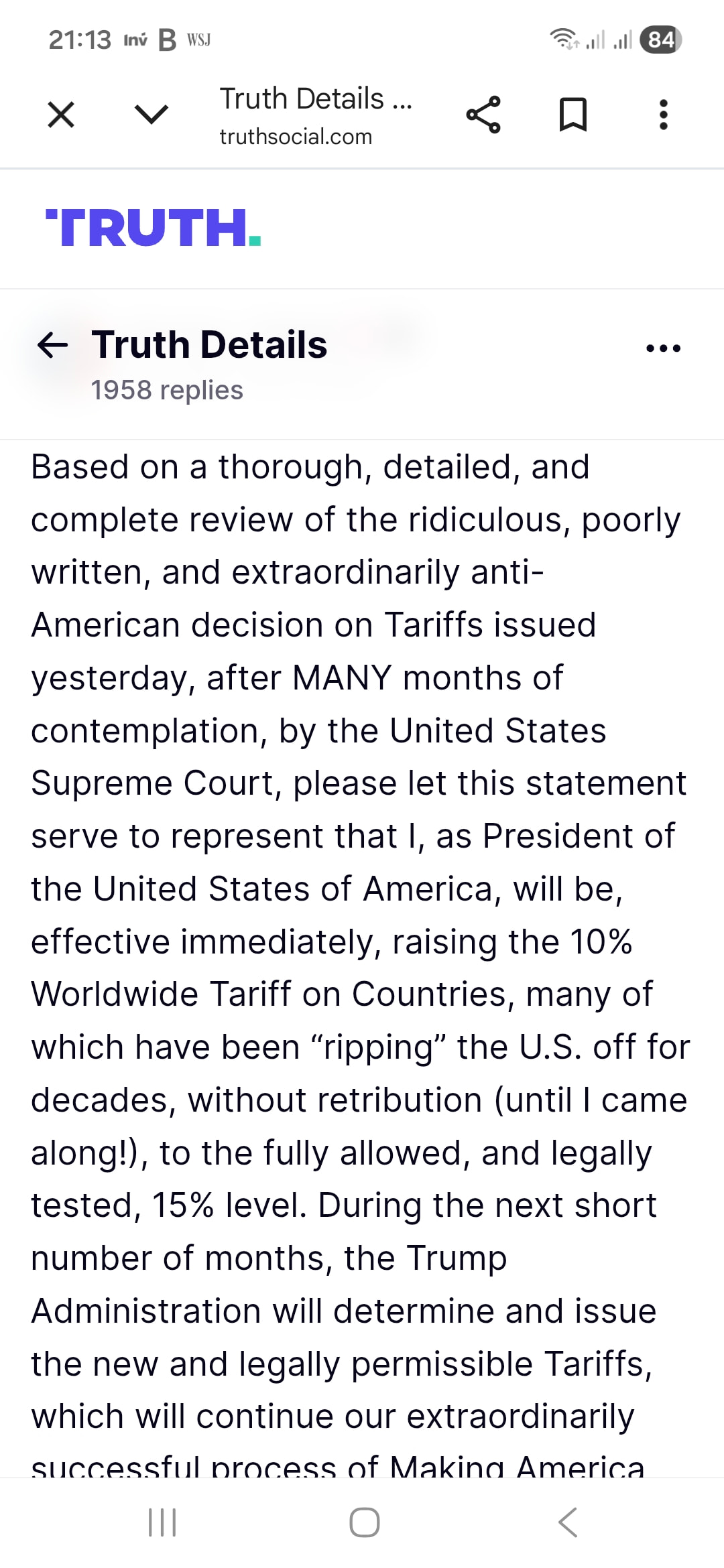 Trump raises global tariff to 15% from 10% announced yesterday