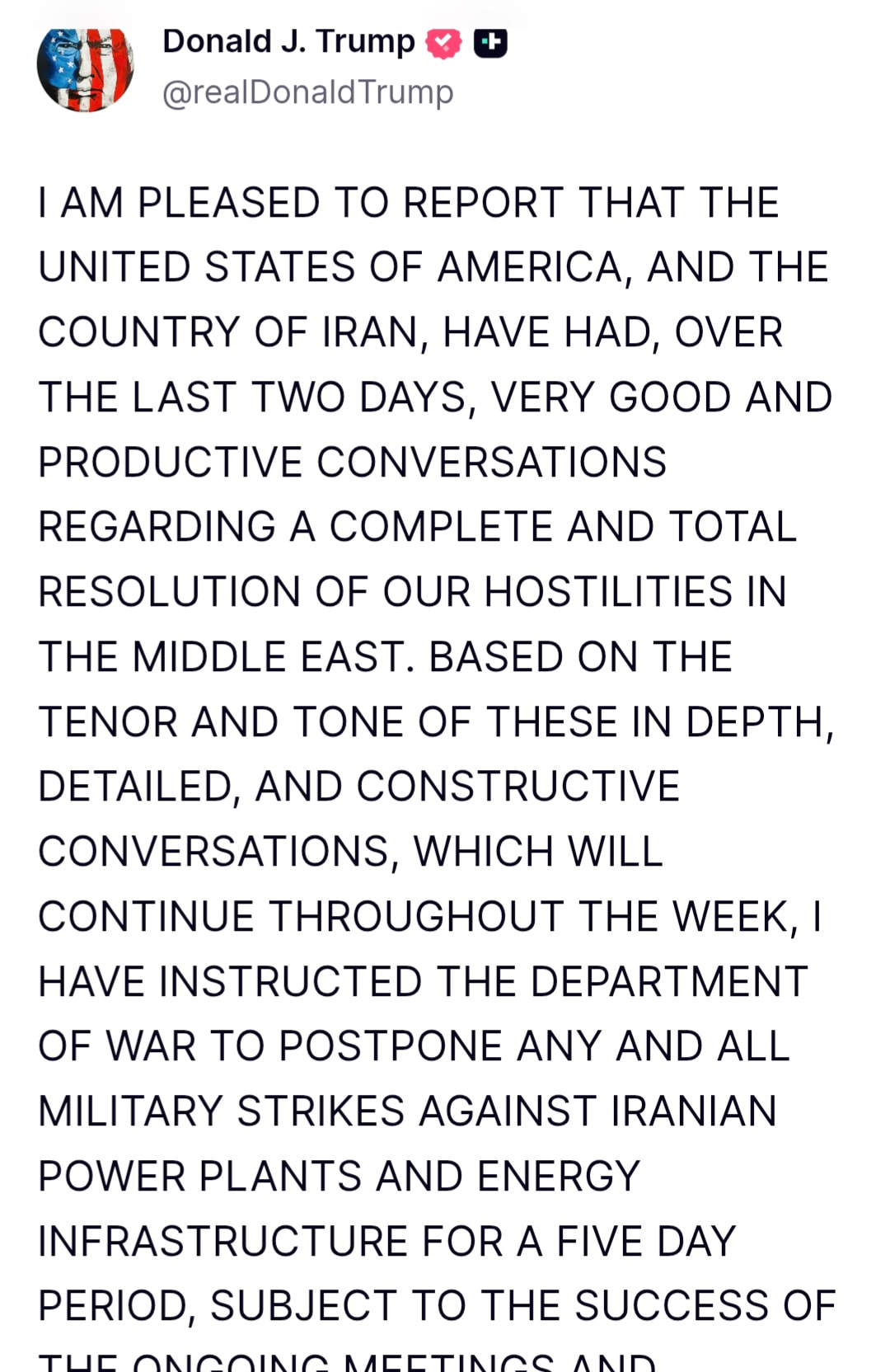 Stock futures rise more than 2% after Trump delayed strikes on Iran power plants, citing productive discussions